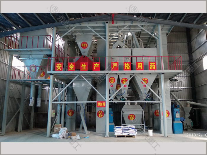 2.工藝流程由投料、配料、輸送、粉碎、提升、混合、包裝等工序組成。工藝流程連續(xù)合理,各單機性能良好,操作維護方便。
